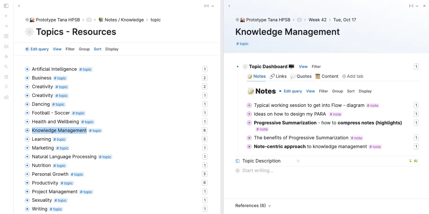 This interconnected system is a result of hundreds of hours designing and building this template, and thousands more learning about tools like Tana, and researching about Knowledge Management and AI for my Master's Thesis.