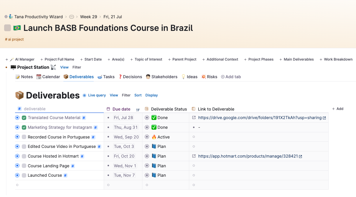 On top of that, I'm also working as Project Manager for Tiago Forte, to bring his methodology Building a Second Brain to my home country, Brazil, having already executed a highly successful book launch in Brazil, and preparing to launch his course in Portuguese.